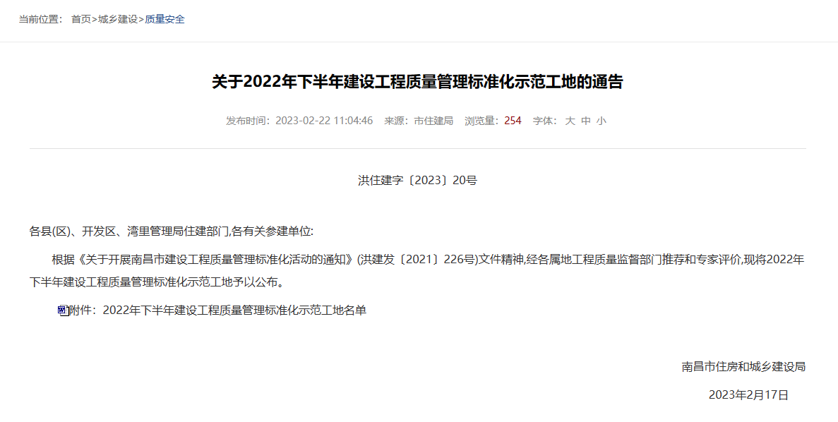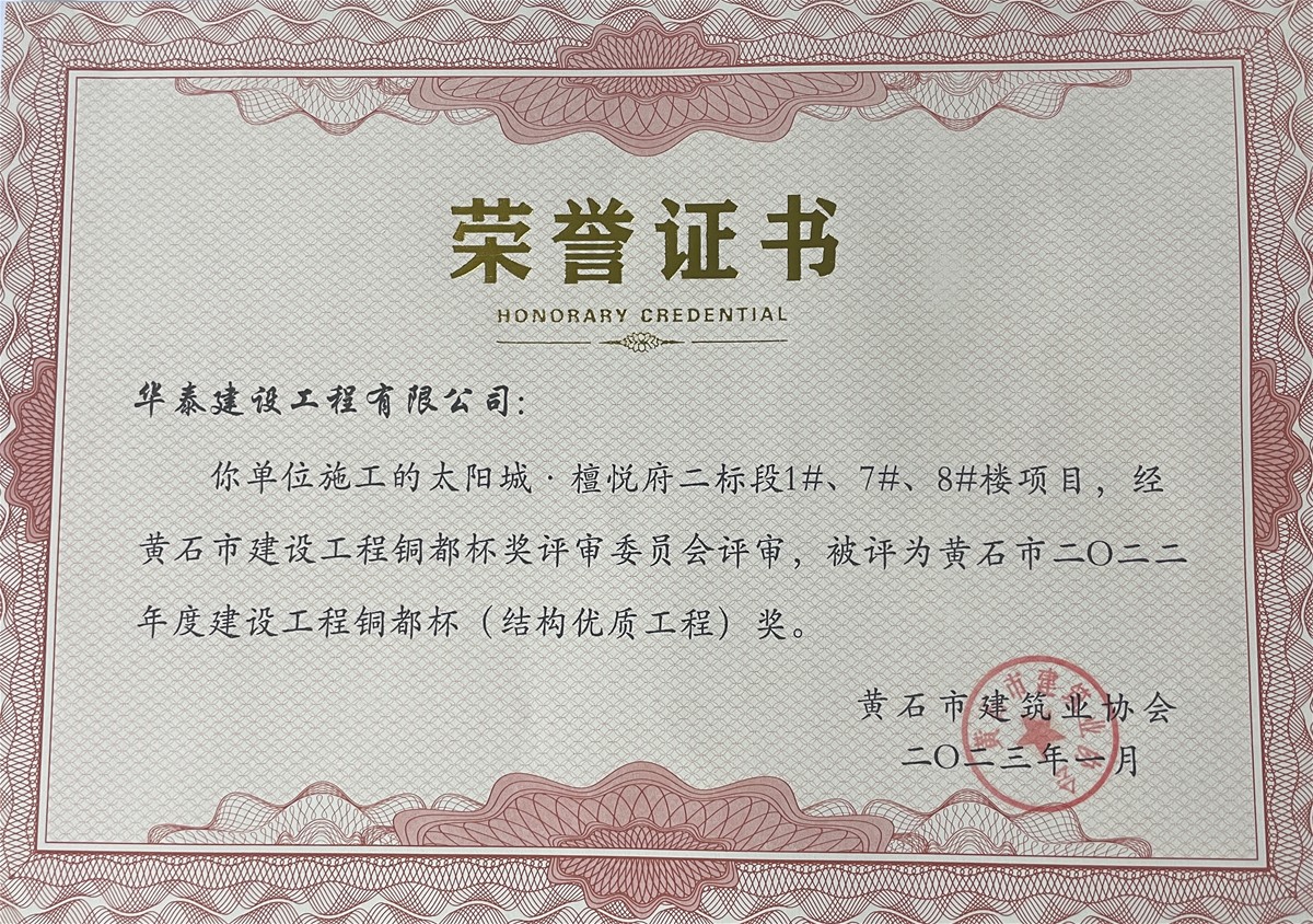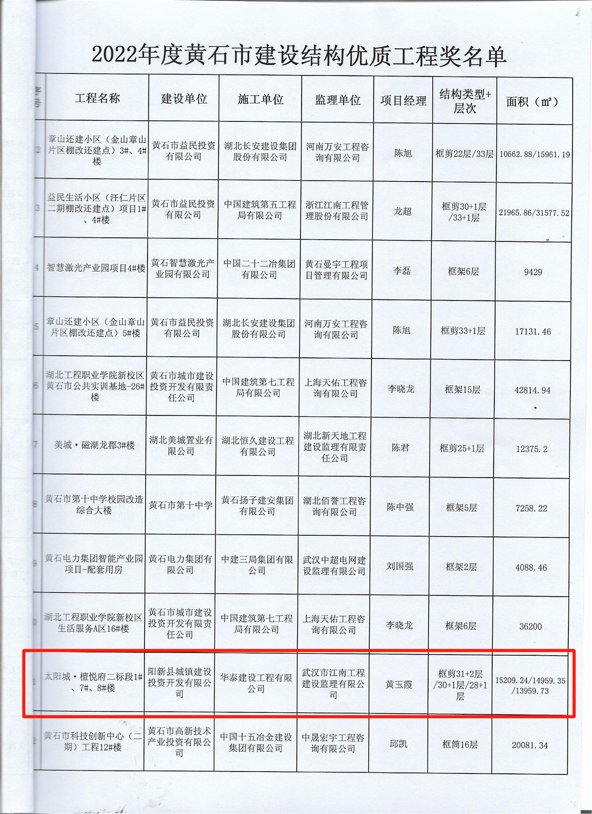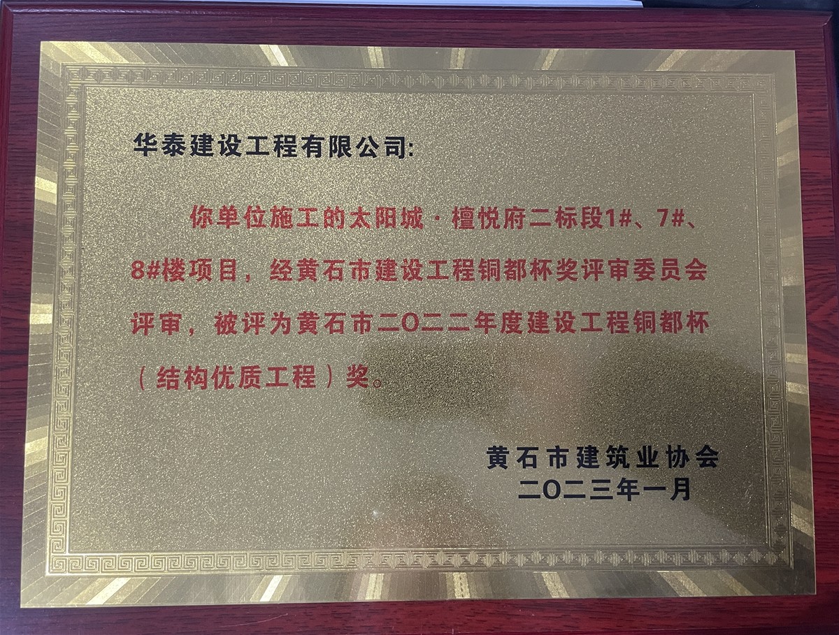 近日,在南昌市住房和城乡建设局发布的《关于2022年下半年建设工程质量管理标准化示范工地的通告》、黄石市建筑业协会发布的《关于授予2022年度黄石市建设结构优质工程奖项目的通知》中,经各属地工程质量监督部门推荐和专家评价,由易游·体育(中国)官方网站,YIYOU SPORTS承建的“南水大厦”项目与“太阳城·檀悦府二标段1#、7#、8#楼”项目分别荣获南昌市“2022年下半年建设工程质量管理标准化示范工地”、“黄石市2022年度建设工程铜都杯(结构优质工程)奖”。建设工程质量标准化示范工地评比是考核参建单位质量管理水平的重要标准之一,同时,建设工程铜都杯(结构优质工程奖)代表了建筑工程结构施工质量的高水平,也是精品工程的重要标志。获此两项殊荣,是对华泰建设项目施工水平及安全质量管理的充分肯定,彰显了华泰建设在工程项目管理、工程品质等领域的卓越实力。
